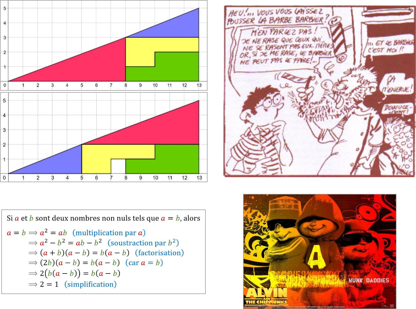 Une des beautés des mathématiques est l'absolu, une fois qu'un résultat est démontré, il sera toujours vrai ! Par exemple, on enseigne encore Pythagore dans les écoles, tandis que toutes les autres sciences n'enseignent que les théories plutôt récentes. Cependant, les démonstrations doivent être rigoureuses, il y a plusieurs pièges possibles. Dans cet exposé assisté par les Chipmunks, on vous présentera de faux résultats avec de fausses démonstrations à l'appui. Saurez-vous trouver les erreurs ?